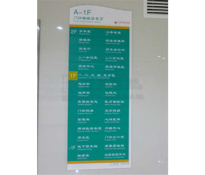 服務內容:醫院樓宇標識,道路指引標識,醫院戶外總圖,樓層索引,平面分布圖,專家介紹欄,宣傳欄,功能室,樓層號,科室名稱牌等